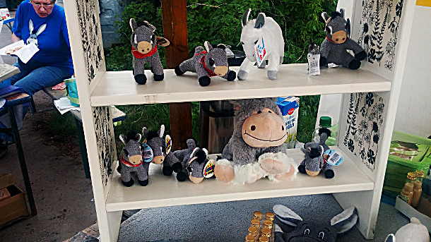 Es gab natürlich auch die Möglichkeit Fragen rund um die Eselhaltung und das Verhalten von Eseln zu stellen oder den Verein Eselfreunde im Havelland e. V. durch den Kauf von Eselartikeln, Eselreiten für Kinder oder einer Spende zu unterstützen.